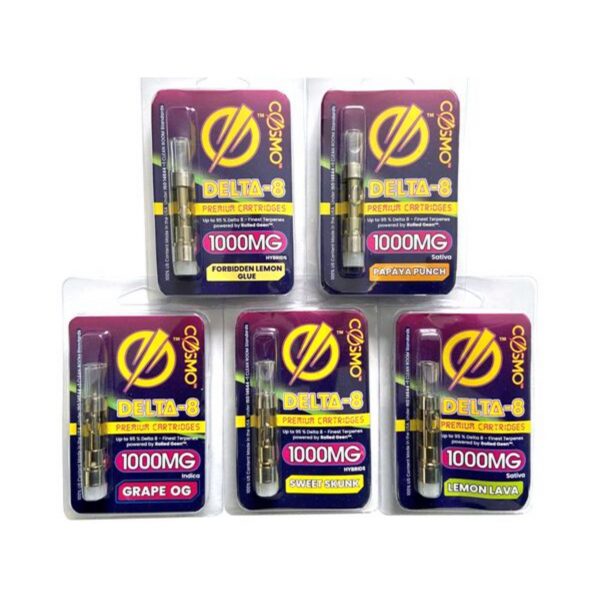 Cosmo Delta 8 Cartridge is proven to be the most potent cartridges to date. Delta 8 contains 95% hemp-derived ∆8THC oil and 5% strain-specific terpenes. Delta 8 THC is known for giving a relaxed, uplifting and energetic experience. Available in 1ml size: