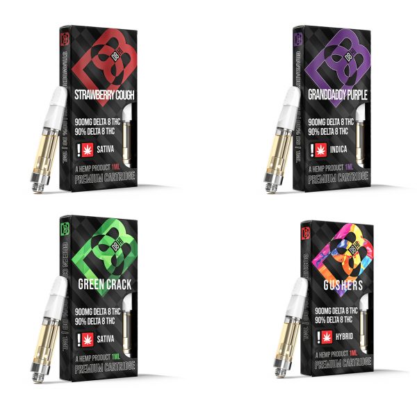 D8-HI Delta 8 vape cartridges have 900mg of Delta 8 THC in every 1 gram cartridge and 90% concentration of Delta8. Delta 8 THC typically gives an mental euphoria with body relaxation, but effects can be more uplifting or relaxing depending on the strain.