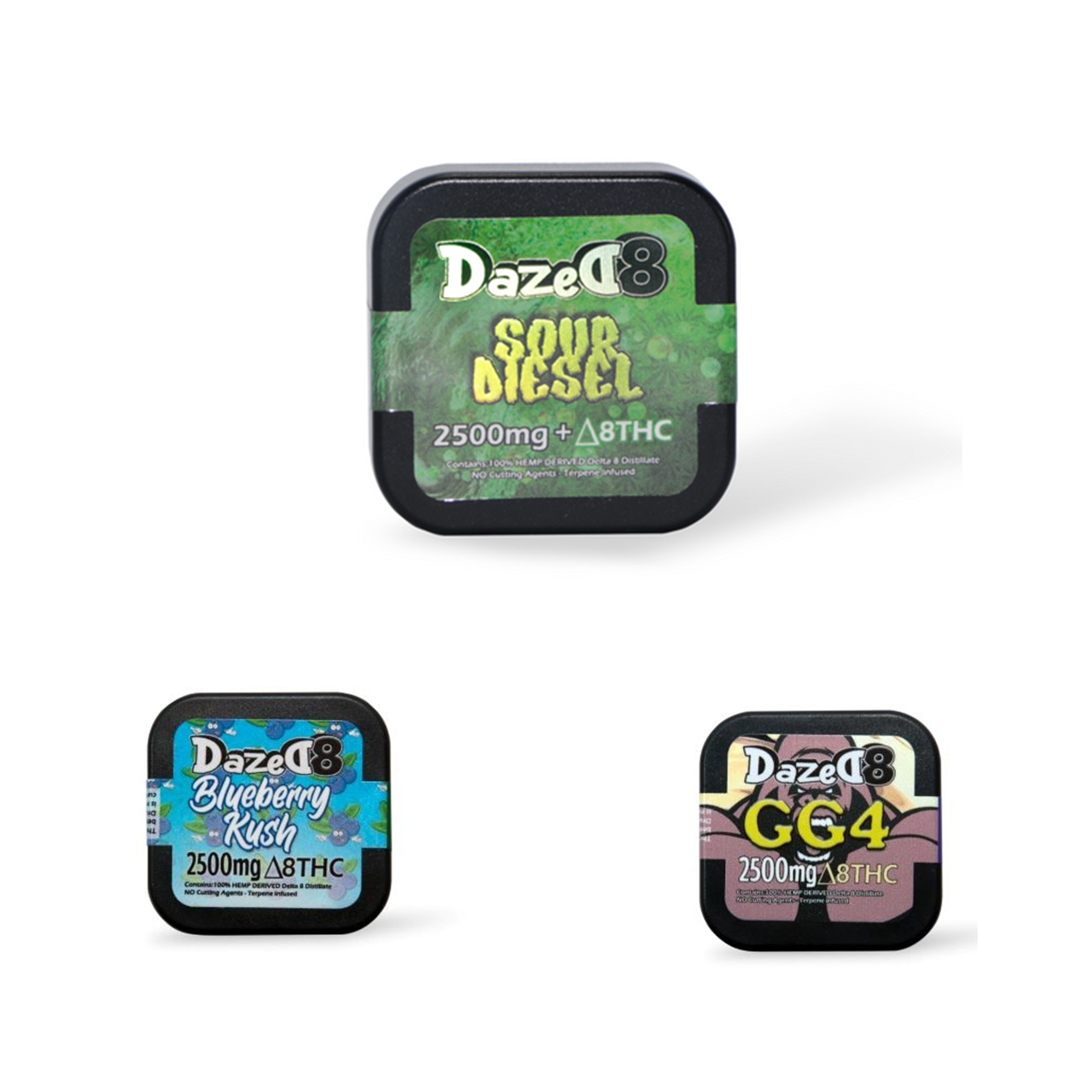 Eachjar contains 2500mg Delta 8 THC, made from pure delta 8 distillate, and botanical terpenes.No cutting agents or fillers used, full flavored product ready to dab right out of the container.