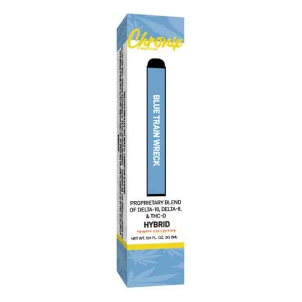 Delta Extrax Blue Train Wreck Live Resin Disposable is made using frozen raw Hemp extracts. You will find that these blends of Delta 8 THC + Delta 10 THC + THC-O synergize well and provide a well-balanced experience.