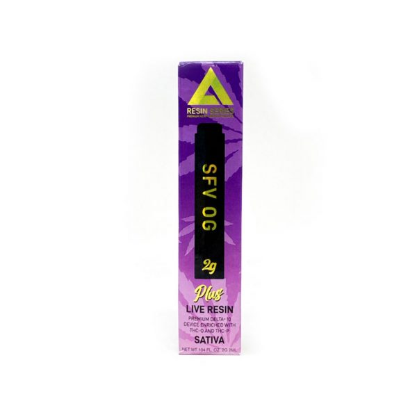 Delta Extrax SFV OG Live Resin disposables are perfectly blended with Delta 8, Delta 10, THC-O and THC-P to create a unique Sativa strain experience! You get 2x the fun, since this is a 2g disposable! This Sativa strain originated in San Fernando Valley (hence the SFV abbreviation), and has lineage from the Afghani landrace strain. It will hit you quickly with a heady high, boosting the mood and overall happiness, while opening the mind for creativity. You’ll eventually find yourself in a very relaxed mode with a body high that’ll soothe. It’s an excellent daytime strain that’ll let you function, while still providing needed therapeutic benefits. Don’t wait, get some today, you’ll be glad you did!