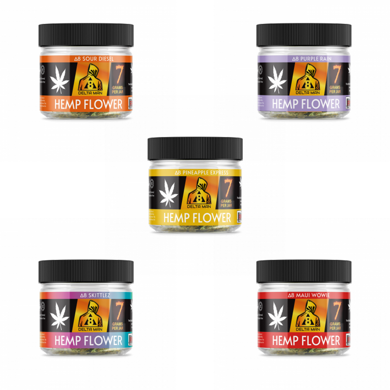 Each jar comes sealed air tight and contains potent hemp flower infused with delta 8 distillate. Simply pop open the top and roll up in your favorite rolling paper, blunt, or glass piece.