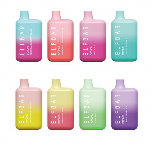 Elf Bar BC5000, featuring a 650mAh rechargeable battery, 13mL of pre-filled 50mg e-liquid, and longevity up to 5000 puffs. With the Elf Bar’s extensive catalog of flavor options, there is plenty of flexibility when it comes to varying user taste preferences.Elf Bar BC5000 Disposable Features: Max Puffs: 5000 Nicotine Strength: 50mg (5%) Prefilled Capacity: 13mL Battery Capacity: 650mAh Heating Element: Dual-Mesh Coils Charging Port: USB Type-C Operation: Draw Activation