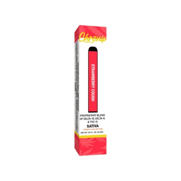 Delta Extrax Strawberry Cough disposables are perfectly blended with Delta 8, Delta 10 and THC-O to create a unique Sativa strain experience! You get 2x the fun, since this is a 2g disposable! This strain is a potent Sativa, and should be handled gently until getting a grasp on the effects. It’s great for daytime, due to the energized, focused, and creative tendencies that people typically report experiencing. It’ll produce a mostly cerebral high, and there’s nothing wrong with a little euphoria during the day. If you’re ready to step-up your game at the next social get-together, you may just want to give this Strawberry Cough strain a try!
