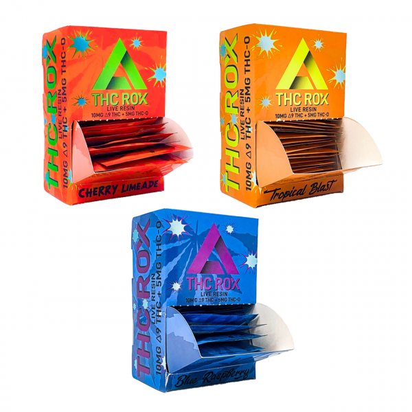 Delta Extrax Delta 9 THC Rox are edible candies that pop and fizz in your mouth! These THC Rox are made with a blend of premium Delta 9 THC and THC-O. For tart, blue raspberry flavors, try the Blue Raspberry pack. If you enjoy sweet, tropical fruit notes, grab the Tropical Blast pack. For the sweet, yet tart lovers, reach for the Cherry Limeade pack. Try all 3 today!