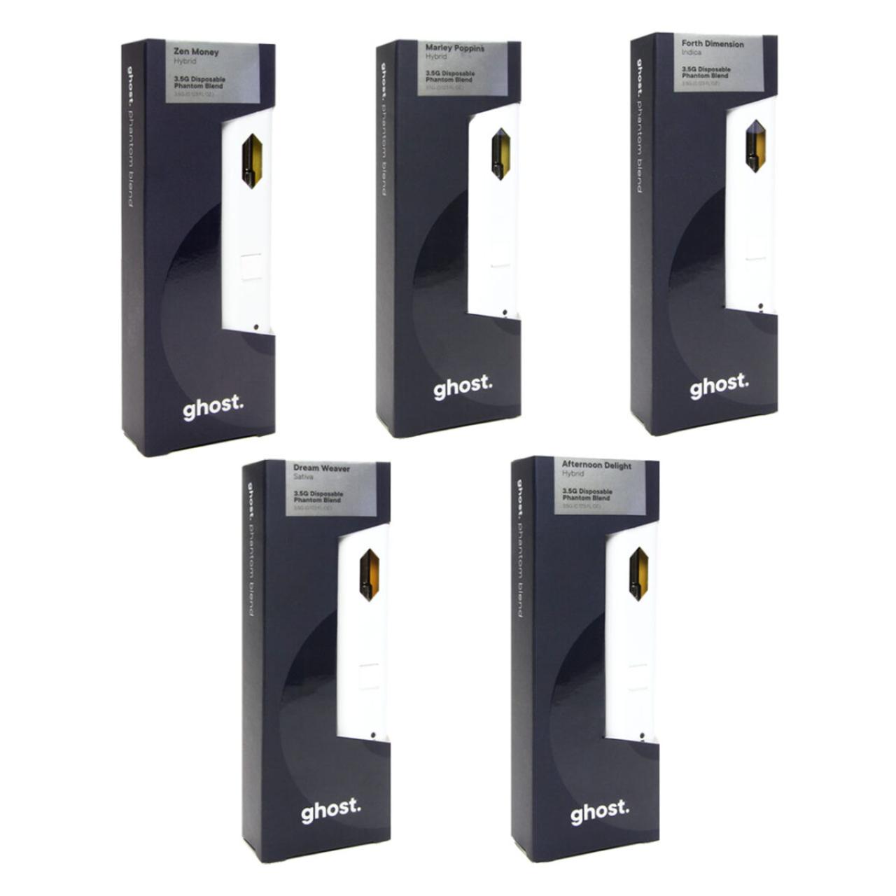 3.5-grams Per Disposable5 clicks on / 5 clicks offPotent blend of Live Resin Delta-8 THC + Delta-6 THC + THC-X + THC-BGhost has finally launched their ultimate addition to the Phantom Blend series! The all new 3.5 gram disposable provides more flavor and potency combined with larger amounts of terpenes and cannabinoids. These 3.5 gram disposables contain a very potent blend of Live ResinDelta-8 THC + Delta-6 THC + THC-X + THC-B.Enjoy the Ghost Phantom Blend disposables to the very last drop as they are also rechargeable (USB-C). Ghost offers 5 exotic profile strains. All Ghost products are fully legal under the 2018 Hemp Farm Bill containing less 0.3% Delta-9.Additional Product Information3500mg Per DisposableRechargeable DisposablePotent and Terpene Specific FlavorsPhantom Blend For Casper Like Effects!